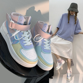 shoes 日系原宿马卡龙运动鞋女2021韩版高帮...