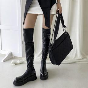 2021秋季中跟厚底过膝靴长筒靴女靴子日韩原宿一件...