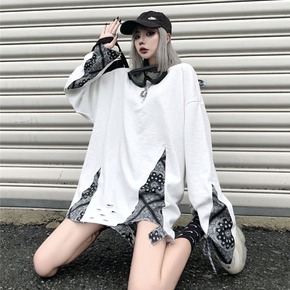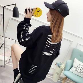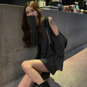 2020秋季新款韩版原宿风bf不规则长袖上衣女学生...