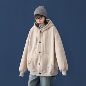 慵懒风连帽卫衣女韩版宽松学生原宿秋冬开衫加厚加绒百...