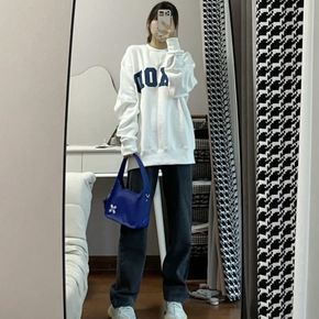 实拍 韩版原宿BF风宽松卫衣女连帽开衫拉链字母印花...