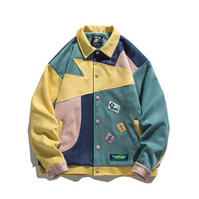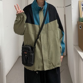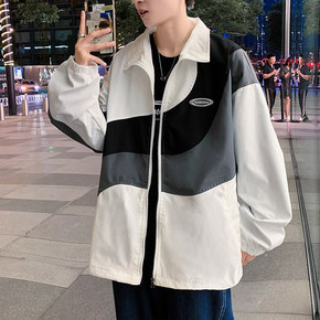 拼接撞色夹克男士春秋季潮牌原宿风休闲衣服潮流ins...