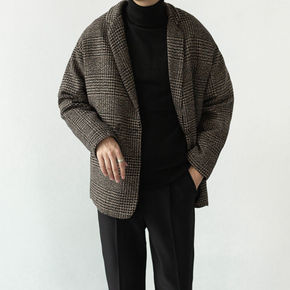 港风原宿复古格子毛呢料西装外套男韩版时尚宽松休闲小...