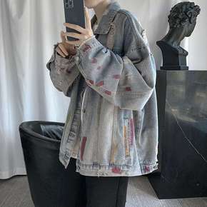 高街潮牌宽松牛仔外套男秋季韩版潮流原宿风夹克褂子百...