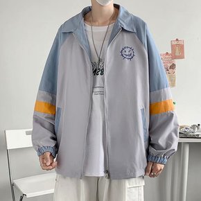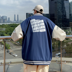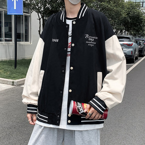 秋季撞色夹克男宽松潮牌衣服ins原宿港风外套韩版潮...