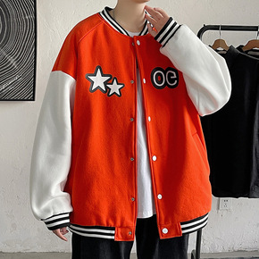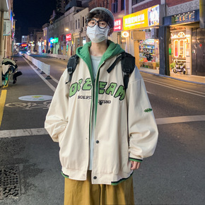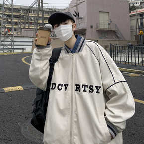 港风春装原宿夹克男宽松麂皮绒外套韩校服潮牌飞行...