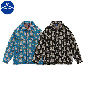 豹纹满印夹克衫男式ins秋季高街潮牌原宿风街头潮流...