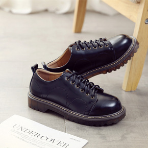 美足动力小皮鞋女复古秋季新款圆头平底原宿软妹日系学...