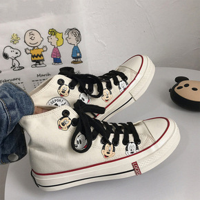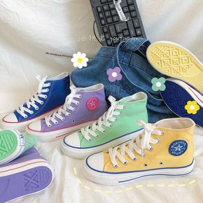 马卡龙色高帮帆布鞋女秋季学生韩版原宿ins街拍港风...