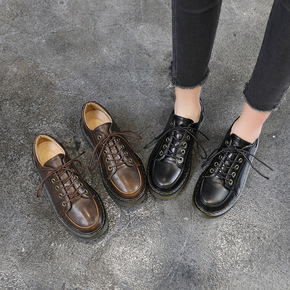 圆头日系小皮鞋女平底学生休闲2020秋季英伦马丁鞋...