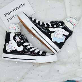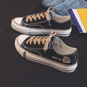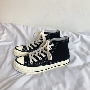 经典黑色复刻帆布鞋女学生韩原宿高帮板鞋港味鞋197...