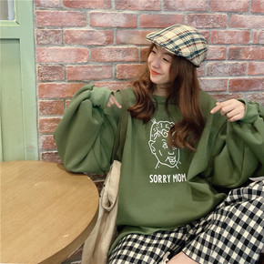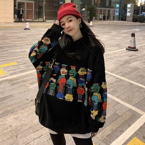 现货2020年秋冬季新款韩版卡通图案印花卫衣女加绒...