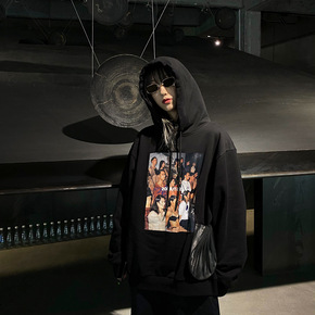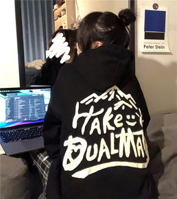 实拍套头卫衣女秋冬情侣款宽松连帽潮ins港风小众设...