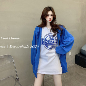 初秋2021薄款长袖T恤港风潮慵懒风字母刺绣Pol...