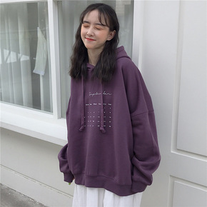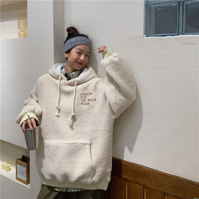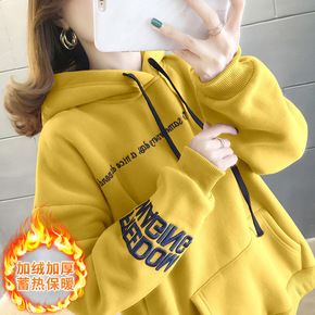 2019秋冬季女装新款原宿风潮牌加绒宽松刺绣卫衣学...