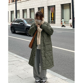 港味复古原宿风经典百搭压纹立领保暖棉服中长款外套潮...