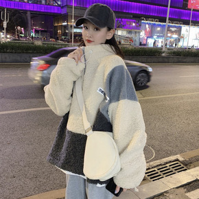 羊羔毛绒外套女2022新款韩版宽松bf慵懒风加厚卫...