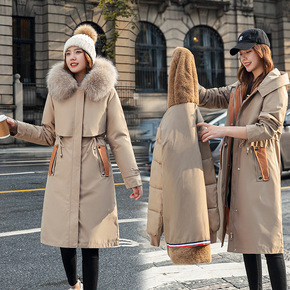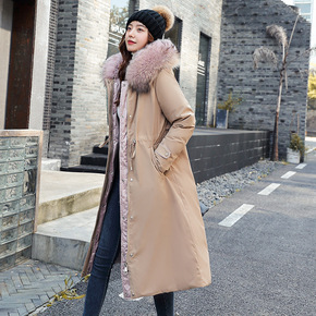 2021冬季新款韩版修身大毛领两面穿中长款过膝羽绒...