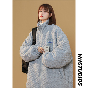 原宿港风棒球服棉服女潮ins冬季加棉加厚华夫格外套...