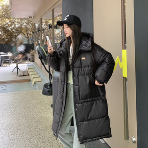 棉衣女 2021秋冬季韩版加长款连帽大码羽绒棉服宽...