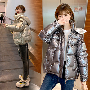 亮面棉衣女2021冬季新款韩版宽松羽绒棉服女中长款...