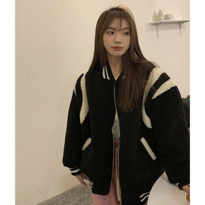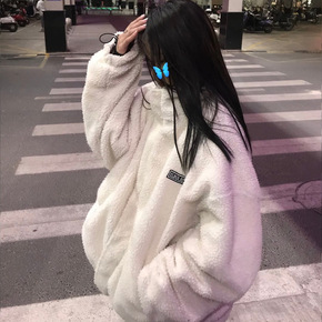 羊羔毛外套女冬季新款宽松原宿风百搭加厚棉服设计感小...