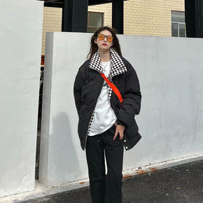 羽绒棉服2021新款女韩版原宿风宽松立领棉服外套秋...