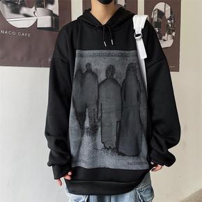 卫衣男潮ins春秋oversize印花连帽半高领假...