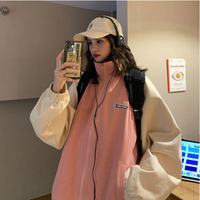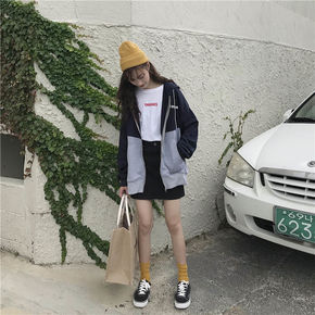 外套女2021新款春秋韩版ins原宿风复古拼色学生...