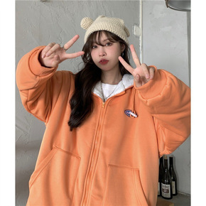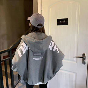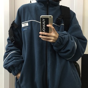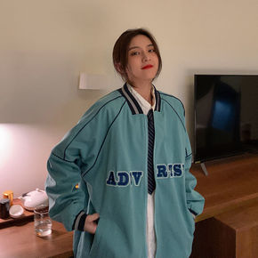 2021新款韩国ins秋冬摇粒绒加厚字母绣标开衫宽...