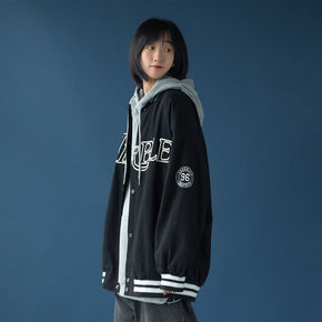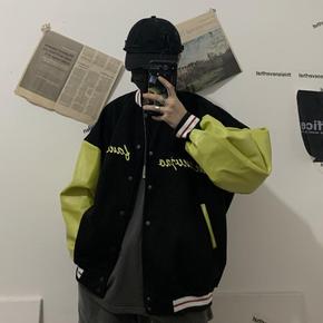 oversize撞色接拼皮料棒球服外套男韩国ins...