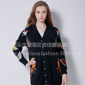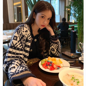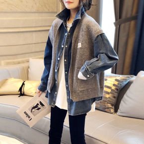 一件代发慵懒原宿宽松开衫女单排扣单件V领毛衣潮流长...