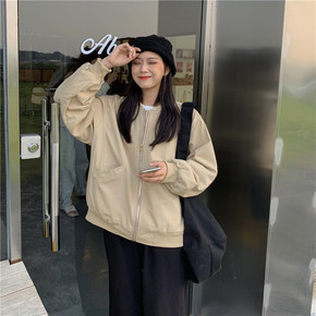 外套女韩版宽松学生早秋上衣慵懒原宿风长袖宽松短款夹...