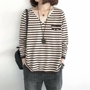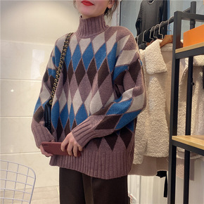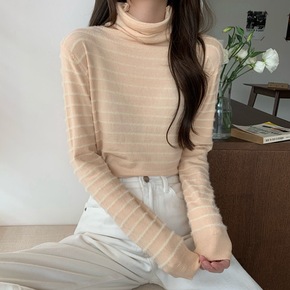 韩版冬季原宿高领条纹毛衣加厚打底基础套头宽松显瘦复...