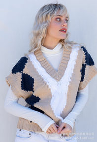 秋冬上新欧美菱形背心 V领慵懒风针织马甲女...