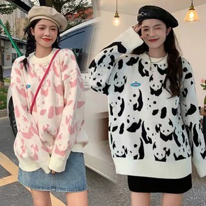 甜系学生原宿风女秋冬新款套头宽松韩版软糯慵懒风针织...