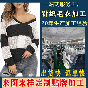 2021亚马逊秋冬新款拼接针织毛衣欧美大码百搭长袖...