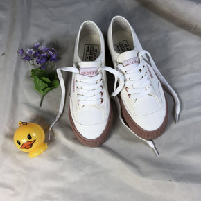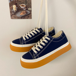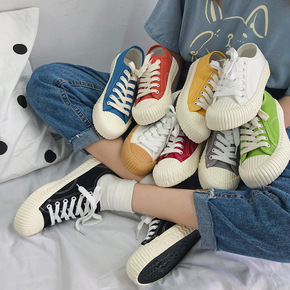 蓓尔韩版帆布鞋女学生百搭原宿风秋新款饼干鞋超火港风...