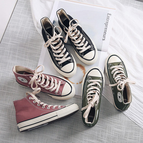 蓓尔高帮帆布鞋女学生百搭韩版休闲鞋复古板鞋原宿风u...