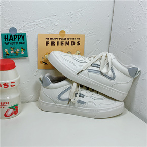 PU皮面高帮帆布鞋女2020春季新款韩版百搭小白鞋...