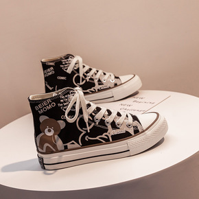 2021秋季新款韩版ulzzang原宿帆布鞋女港味...