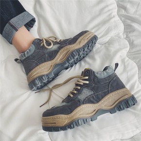 2022四季款原宿风五芒星系带高帮潮鞋户外厚底马丁...