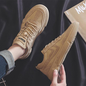 小蓝仔系带纯色圆头新款男鞋韩版潮流板鞋复古原宿风学...