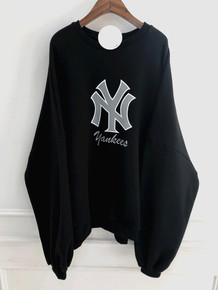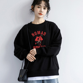 复古港风chic加厚印花卫衣女设计感小众宽松套头小...