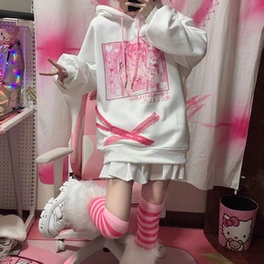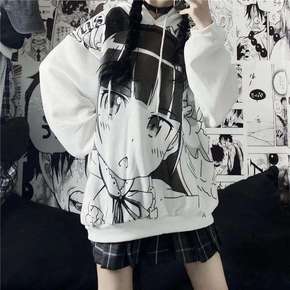 2021秋冬新款日系动漫二次元卡通洛丽塔印花连帽加...