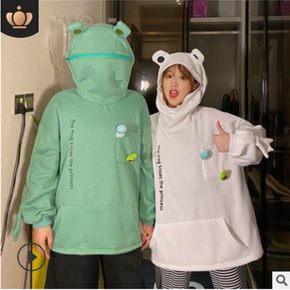 外贸青蛙套头卫衣女加绒加厚秋冬新款宽松韩版闺蜜装外...