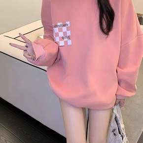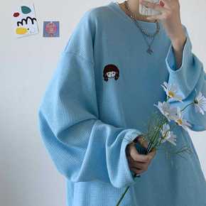 胖m2-300斤超大码华夫格卫衣女宽松针织衫上衣学...