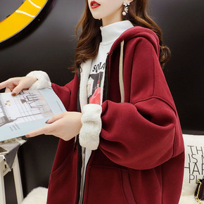 ins超火外套2020秋冬季女装加绒卫衣丧系衣服长...