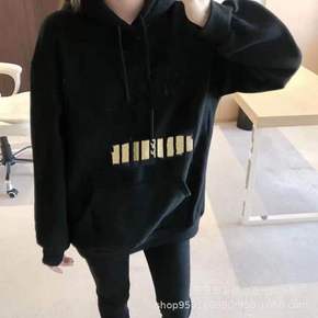 2021爆款黑金logo卫衣女冬季加绒加厚连帽口袋...