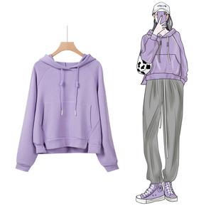 连帽卫衣女2021年新款春秋韩版宽松外套纯色百搭空...
